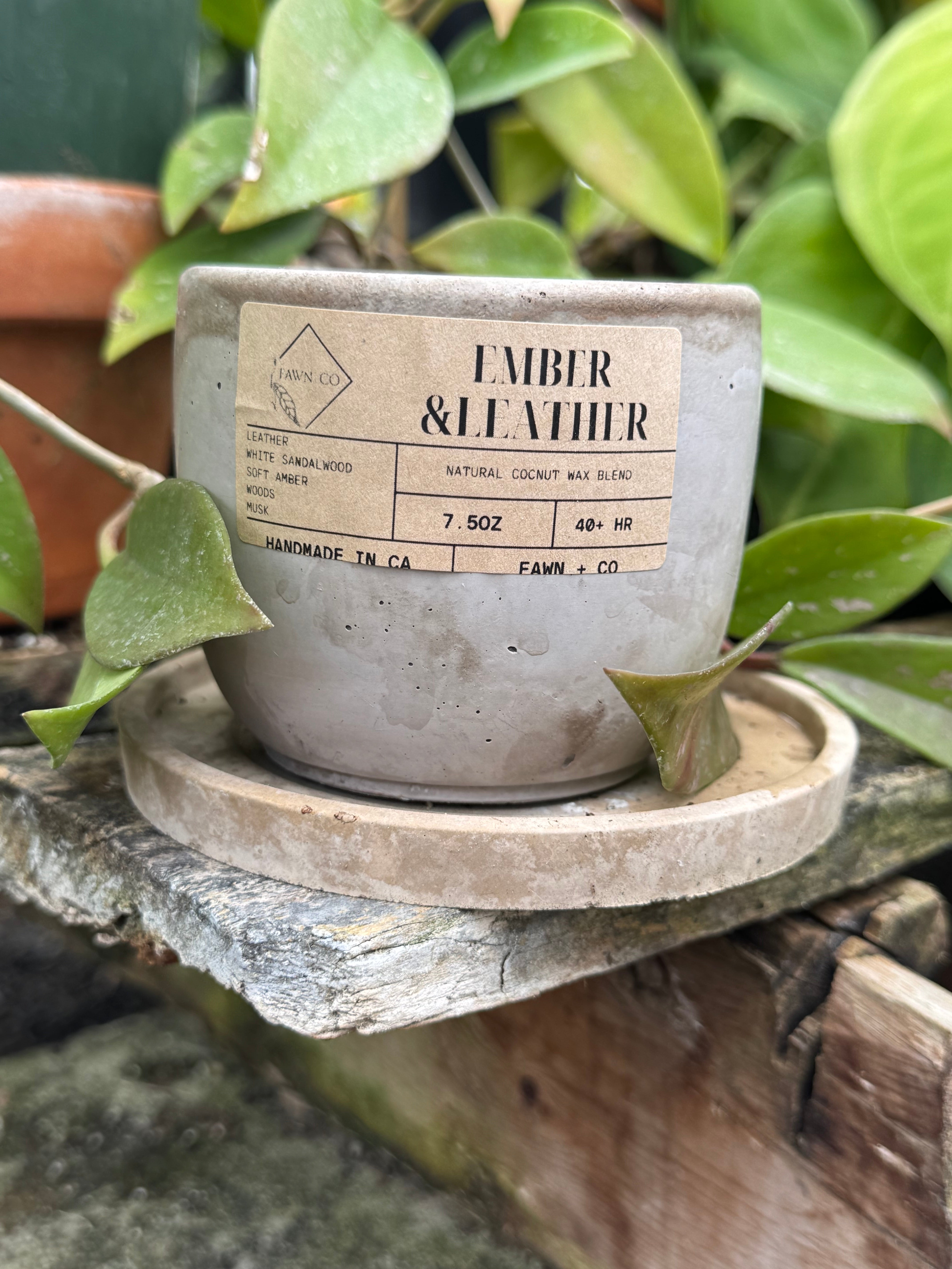 Ember and Leather Coconut wax cement Candle